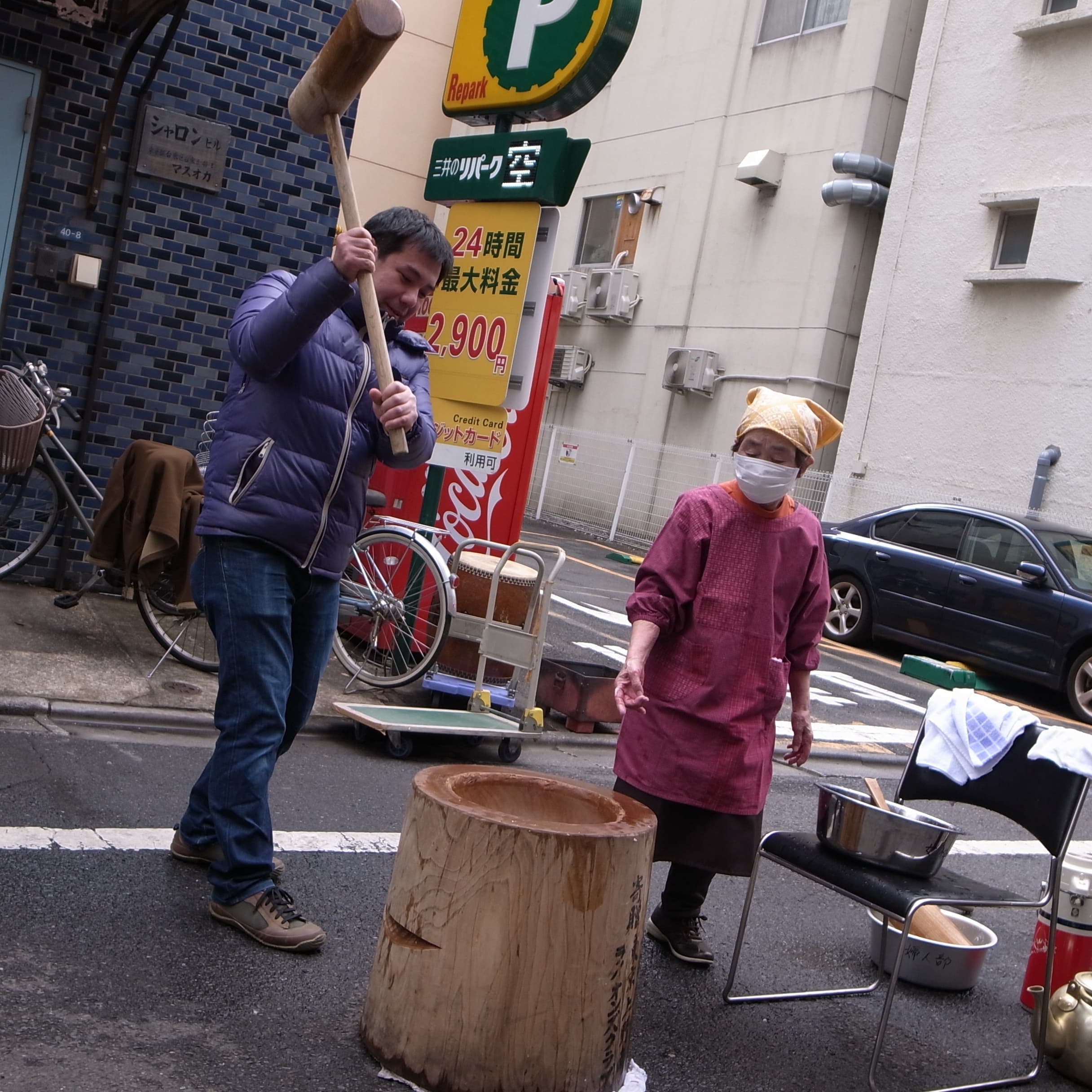 青親会は餅つきをお手伝いします。