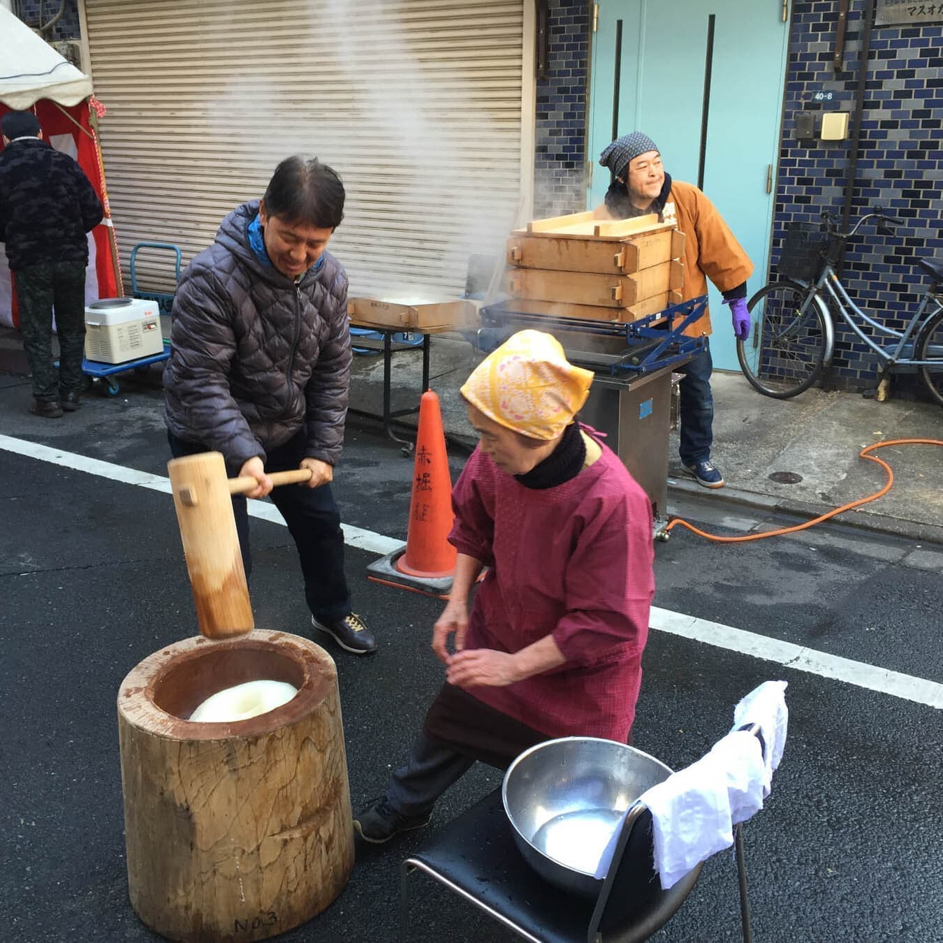 その後餅つきを行い、参列者に振る舞います。
